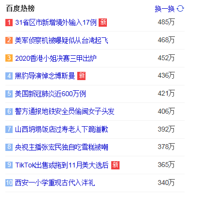 1.31省區(qū)市新增境外輸入17例 獵頭熱點熱度485萬
