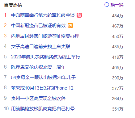 2.中國新冠疫苗已被證明有效 獵頭熱點熱度467萬