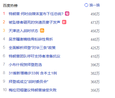 1.特朗普:何時由媒體宣布下任總統? 獵頭熱度熱點490萬
