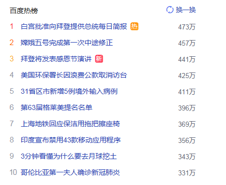 1. 白宮批準向拜登提供總統每日簡報 獵頭熱度熱點473萬