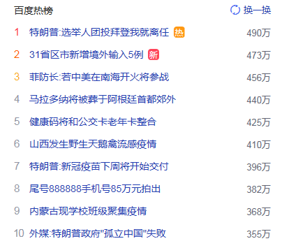 1. 特朗普:選舉人團投拜登我就離任 獵頭熱度熱點490萬