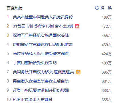 1. 美突擊檢查中國赴美人員黨員身份 獵頭熱度熱點489萬