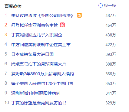 1. 美眾議院通過《外國公司問責法》 獵頭熱度熱點487萬